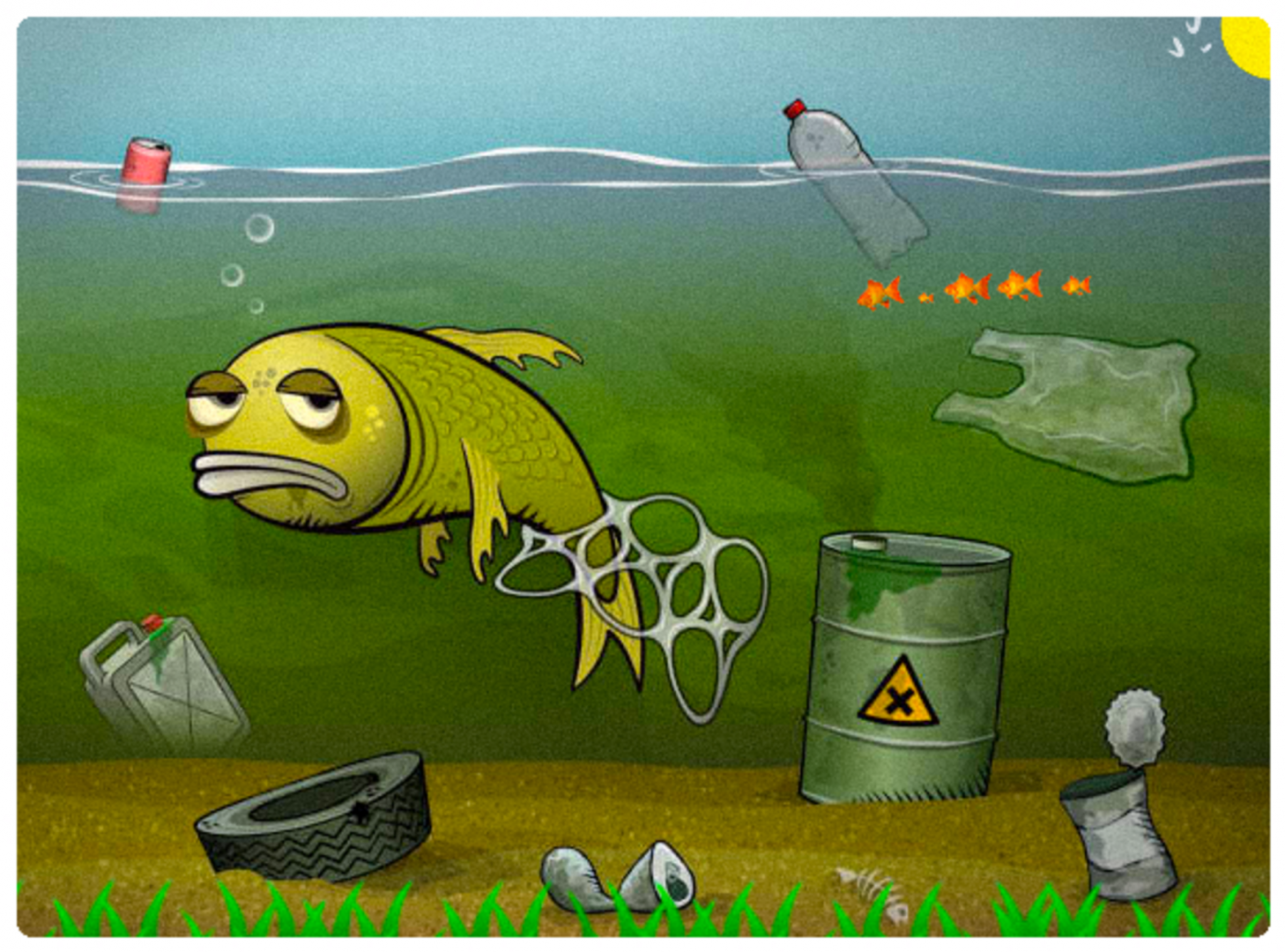 This artwork depicts a fishing fish with a sad expression, surrounded by the devastating consequences of human neglect and pollution. The ocean, once a thriving ecosystem, is now filled with plastic waste, chemical pollutants, and hazardous materials, including plastic bags, cans, bottles, hazardous tanks, etc. The fish's sorrowful face represents the emotional toll of pollution on marine life, while the surrounding waste highlights the severity of the problem and the need for immediate action to restore the ocean's health. The inclusion of a fishing fish in the image also touches on the theme of sustainable fishing practices, emphasizing the importance of responsible fishing methods and the need to protect marine life from overfishing and destructive fishing practices. This image serves as a reminder of the urgent need for ocean restoration and water conservation, and encourages viewers to take collective action to reduce their plastic footprint, implement sustainable practices, and protect marine life from the harmful effects of pollution. By taking responsibility for our actions and making conscious choices, we can work towards a future where the ocean and its inhabitants can thrive once again both now and the future tomorrow.