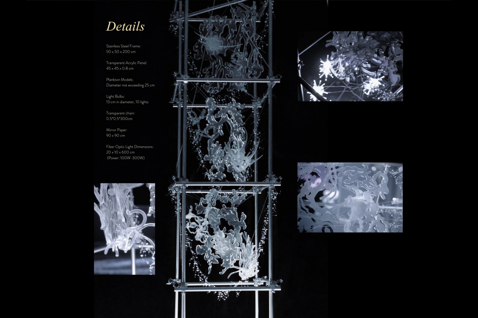 Drifting Poetry explores the delicate balance between marine ecosystems and human existence through sculptural installations. Inspired by the drifting nature of plankton, this work translates microscopic ocean life into tangible 3D models. Using AI-generated forms derived from scientific imagery, the installation highlights the unseen yet essential role of plankton in sustaining marine biodiversity. Through dynamic compositions of floating structures and light-based interactions, the piece invites viewers to contemplate the fragility and resilience of oceanic life. By engaging with these organic forms, audiences are encouraged to reflect on humanity’s interconnectedness with marine ecosystems.