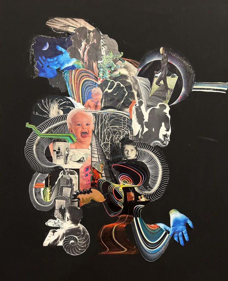 By integrating fragmented imagery into a cohesive whole, the artwork mirrors the Earth’s ability to regenerate and adapt despite disruption. The layered composition, with swirling patterns and overlapping figures, suggests cycles of destruction and renewal—echoing nature’s own processes of healing.