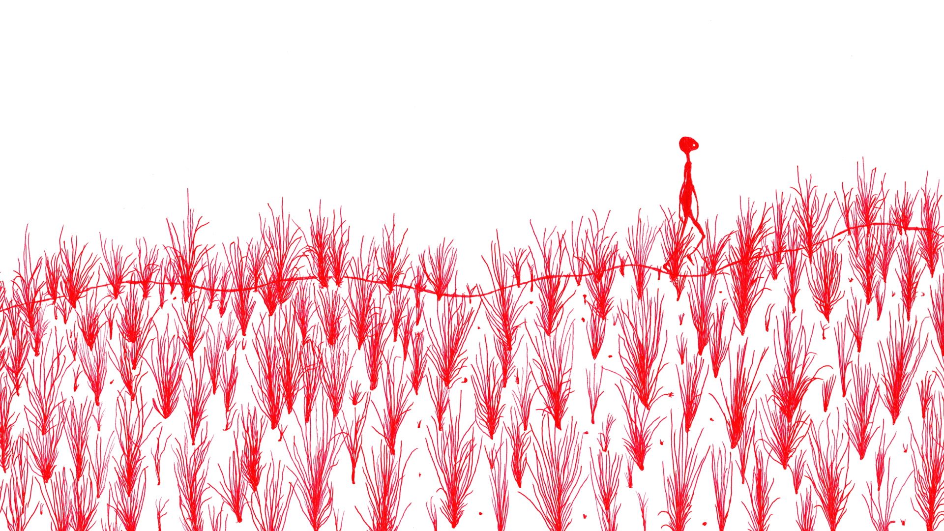“End” is an animated video, made on paper with red ink. The images, which flow one after the other, create inhospitable landscapes. These scenarios are the last destinations of a journey performed by small, gaunt and exhausted figures. End does not want to be the vision of a world that is coming to the end of its existence, but rather the rediscovered will of the human being to unite totally with the majestic and impetuous nature.