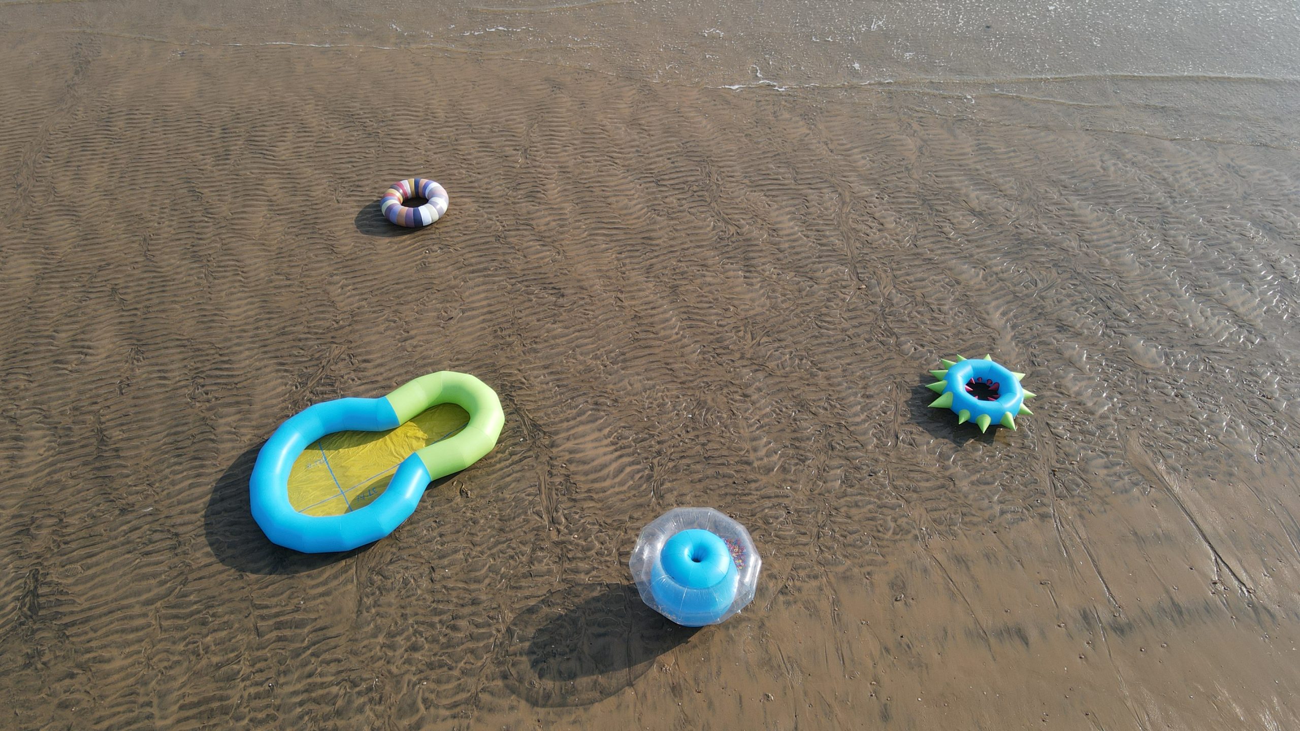 Growing up on a peninsula city embraced by the sea, I've always felt an intrinsic bond with the ocean. Traveling and residing globally, I've encountered a recurring sensation—a profound déjà vu triggered by symbols and spaces reminiscent of my coastal hometown. In "Return to the Ocean," I place symbolic objects and geometric forms inspired by my city upon sandy shores, creating visual metaphors for the interconnectedness between humans and the marine environment. This series comprises illuminated light boxes and inflatable sculptures; one inflatable specifically incorporates colors from 30 days of collected sunsets, reflecting the slow-paced lifestyle and serene beauty of my seaside hometown. The largest inflatable embodies the city's unique geography, surrounded by sea on three sides and mountains on the fourth, drawing considerable attention from local residents. The work addresses the urgent call for planetary healing by illustrating how coastal communities—the "Blue Tribes"—can nurture harmony between humanity and ocean ecosystems. Through playful yet contemplative imagery, the series explores themes of environmental mindfulness, marine biodiversity, and the collective memory of oceanic landscapes, encouraging a restorative dialogue about ocean health and human responsibility. (https://yuan-uan.art/return-to-the-ocean)