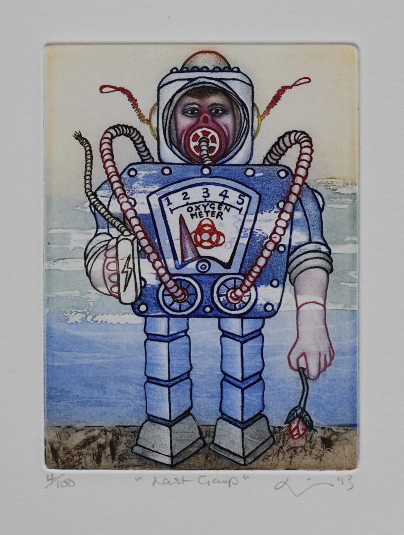 Social art award Statement The images of childhood form my visual language and, after initially training as a painter, I’m now working within a specialised form of colour inked steel plate etching. Whilst studying Jung's psychology, and philosophy in general, alchemy and its abundant use of symbols has held my attention. Using toys and games to portray ideas, I am hoping to connect on a more grounded level: asking the viewer to look inside themselves as individuals and take responsibility for what they do, how they live and their impact upon the world. My subjects of interest continually evolve but have always come from the perspective of a woman and a mother, sometimes fundamentally feminist in nature