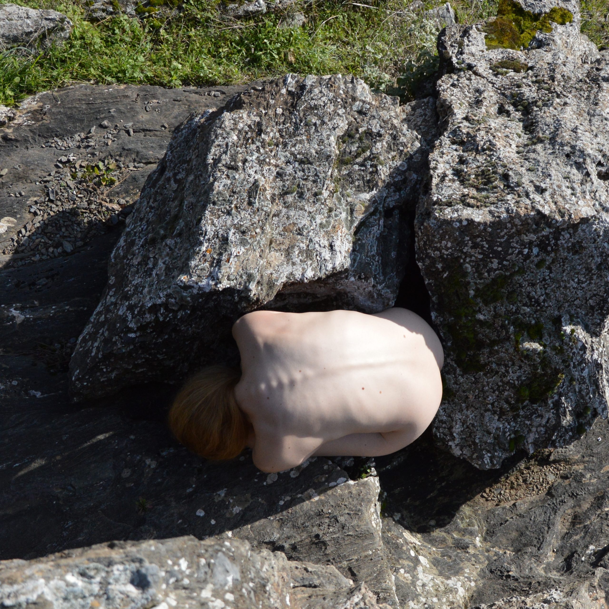Athina Kanela’s performance-for-camera, in which she fits her nude body into the natural gaps of stones, embodies a deep ecological and existential inquiry—one that seeks to dissolve the boundaries between the human body and the natural world. By positioning herself within the crevices of rock formations, Kanela enacts a symbolic return to nature, evoking themes of primal belonging, ecological embodiment, and the search for a natural womb. This work resonates with ecofeminist theory, particularly the writings of Val Plumwood and Carolyn Merchant, who critique the Western tradition of separating humanity from nature. By merging her body with the earth’s geological forms, Kanela resists this dualist framework and reclaims an interconnected, non-hierarchical relationship with the environment. The gaps in the stones function as a protective, womb-like space, suggesting an act of rebirth, shelter, and planetary healing—themes deeply embedded in both prehistoric and contemporary eco-spiritual practices. From a phenomenological perspective, drawing on Maurice Merleau-Ponty, the performance challenges the idea of the body as distinct from space. Instead, it positions the human form as fluid, porous, and deeply entangled with its surroundings. The rugged landscape does not serve as a backdrop but as an active participant in the performative gesture, transforming the body into an organic extension of the terrain. Kanela’s work aligns with land art and environmental performance, recalling artists like Ana Mendieta, whose Silueta Series explored bodily imprints in natural settings. In the context of post-humanist thought, her performance suggests that the body is not superior to nature but rather a coexisting entity within a shared ecosystem. Ultimately, Kanela’s performance is an act of reconciliation and surrender, urging a return to a more intimate, embodied relationship with the earth—one that acknowledges nature as both a source of origin and a space for healing.